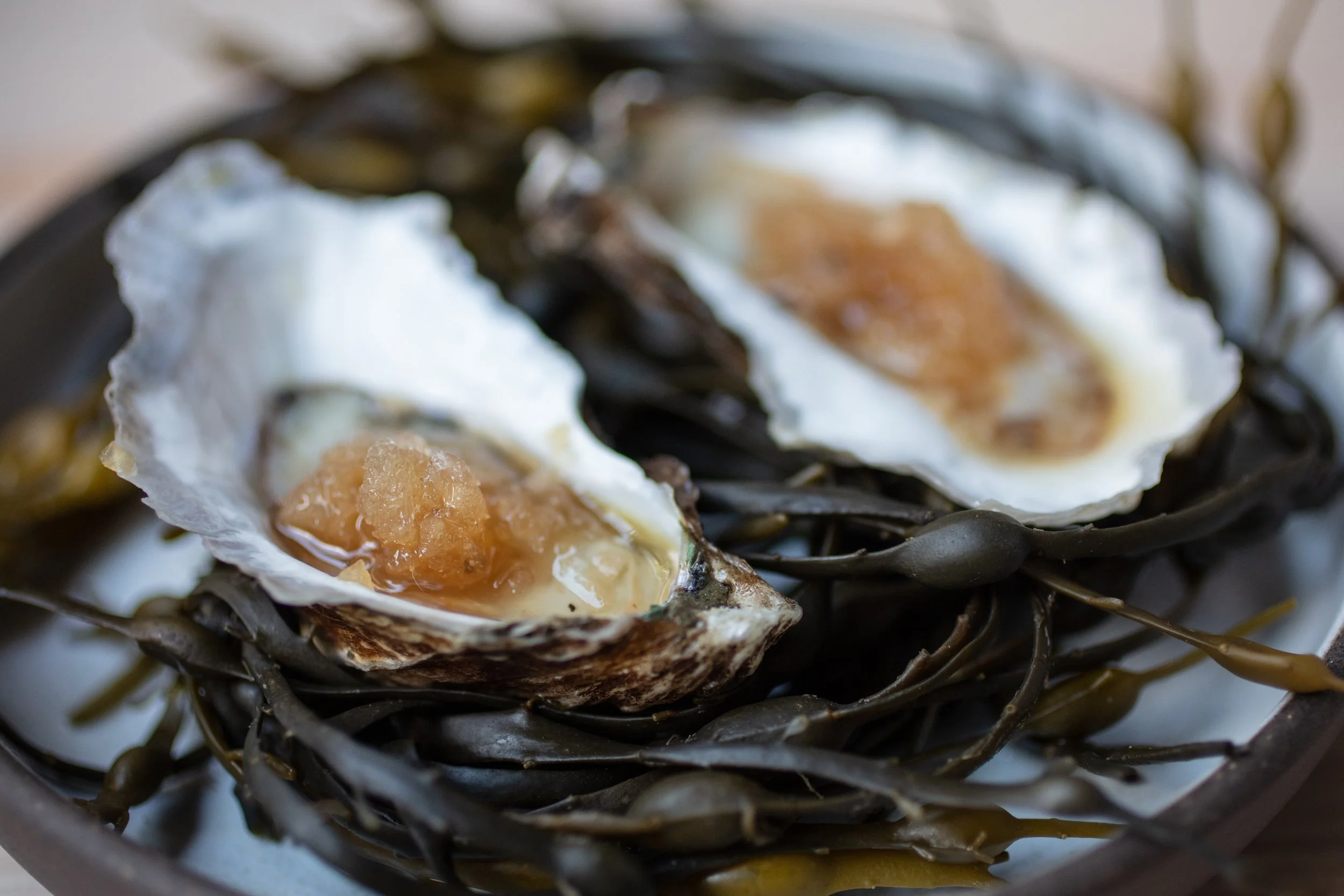 MENU Tasting 110 wine 90 Bites -Oysters /Caviar & Potato/ cucumber TOMATO matcha/charcoal/fresno EVERYTHING BRIOCHE cured trout/miso yolk/trout roe CAVATELLI scallop bonito/nori/parmigiana OR XLB AGNOLOTTI black truffle/pork/ginger LOBSTER THEE WAYS Salt+Pepper/sticky rice/miso beurre blanc APPLE FRITTER cheddar/raspberry/cognac MIGNARDISE